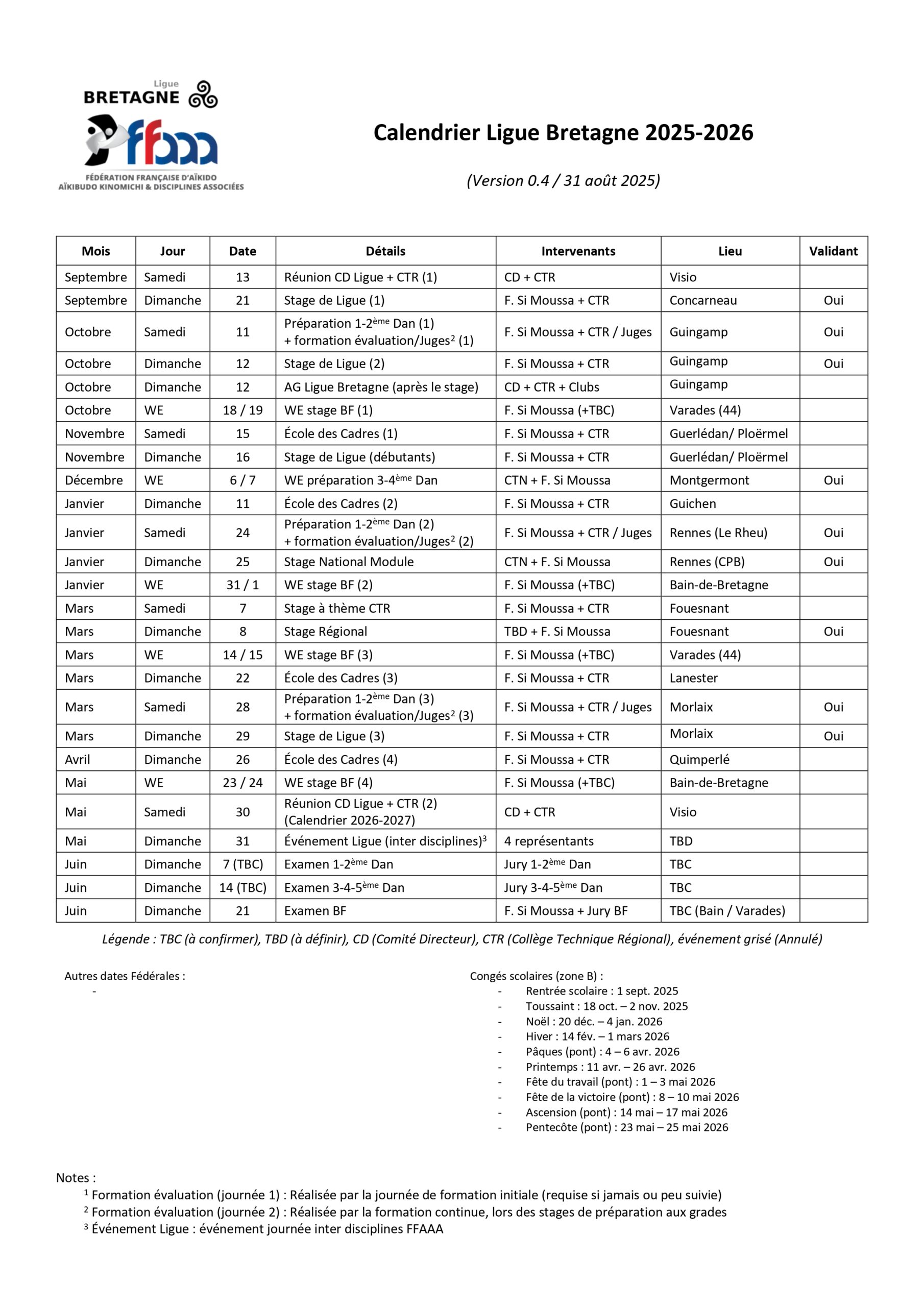 Retrouvez dans le calendrier toutes les dates de stages de la ligue Bretagne ou des stages privés.